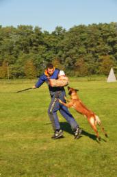 Fee stammt aus dem letzten Wurf mit "Orka de Virlevent". Sie ist eine sehr temperamentvolle Hündin und hat einen sehr hohen Spieltrieb. Im Schutzdienst zeigt Fee stets volle und harte Griffe, bei hoher Anbissgeschwindigkeit und Zielstrebigkeit.
